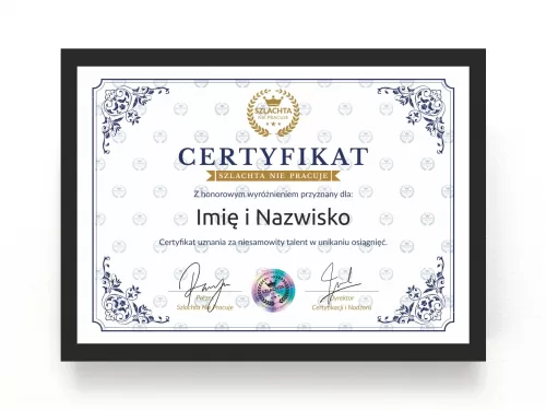 Certyfikat uznania za pięcie się po szczeblach kariery w Szlachta Nie Pracuje