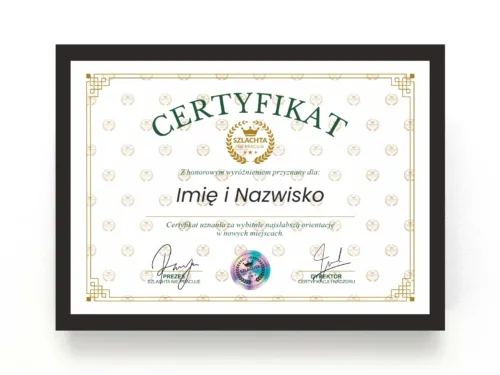 Certyfikat uznania za wybitnie najsłabszą orientację w nowych miejscach