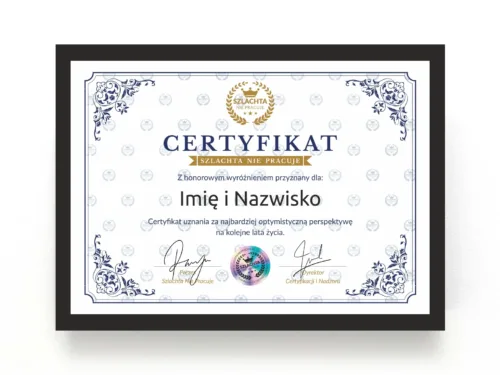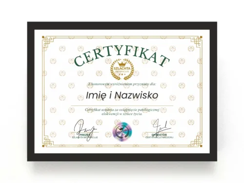 Certyfikat uznania za życie godne prawdziwego szlachcica, który pracy sumiennie unika