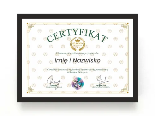Certyfikat uznania za najbardziej optymistyczną perspektywę na kolejne lata życia