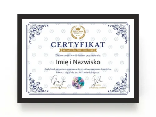Certyfikat uznania za opanowanie sztuki wyznaczania terminów, których nigdy nie jest w stanie dotrzymać