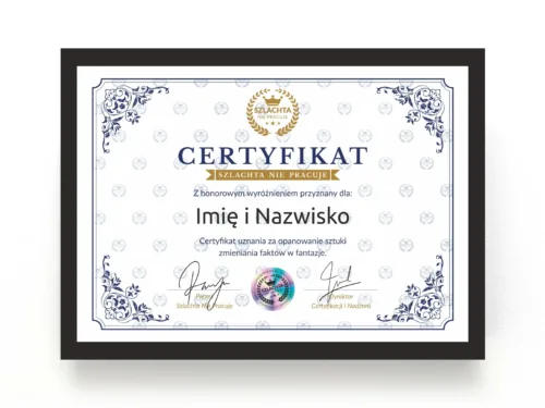 Certyfikat uznania za opanowanie sztuki zmieniania faktów w fantazje