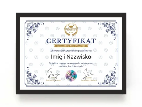 Certyfikat uznania za osiągnięcie patologicznej elokwencji w sztuce życia